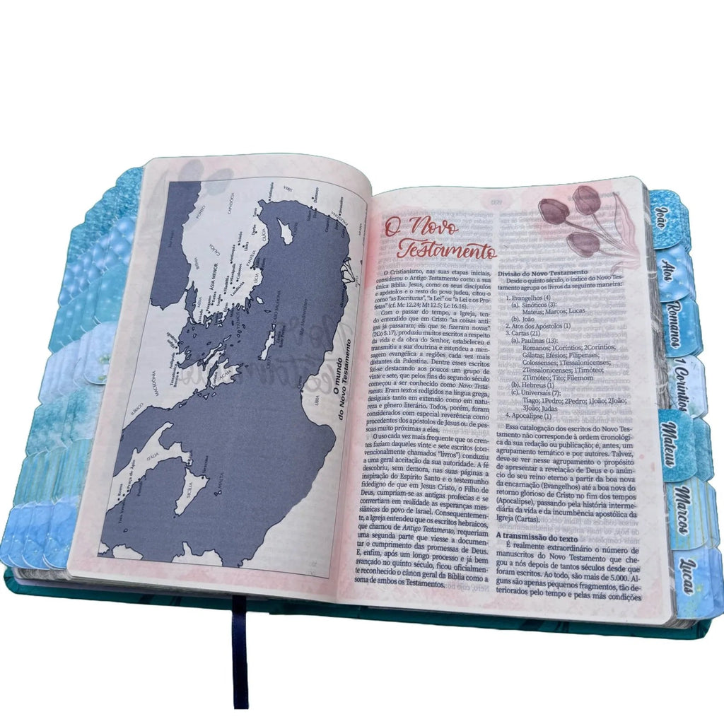 A Bíblia de Estudo da Mulher Tulipa Azul Turquesa SBB Com Abas Adesivas é uma ferramenta indispensável para todas as mulheres que desejam se aprofundar nos ensinamentos da Palavra de Deus. Com uma capa linda e delicada, na cor azul turquesa com detalhes em tulipas, essa Bíblia é perfeita para presentear ou para uso pessoal.