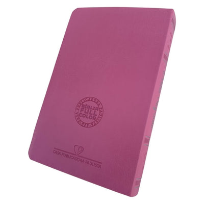Bíblia com acabamento em couro bond, contém abas adesivas aplicadas e fitilho para marcação da passagem bíblica.